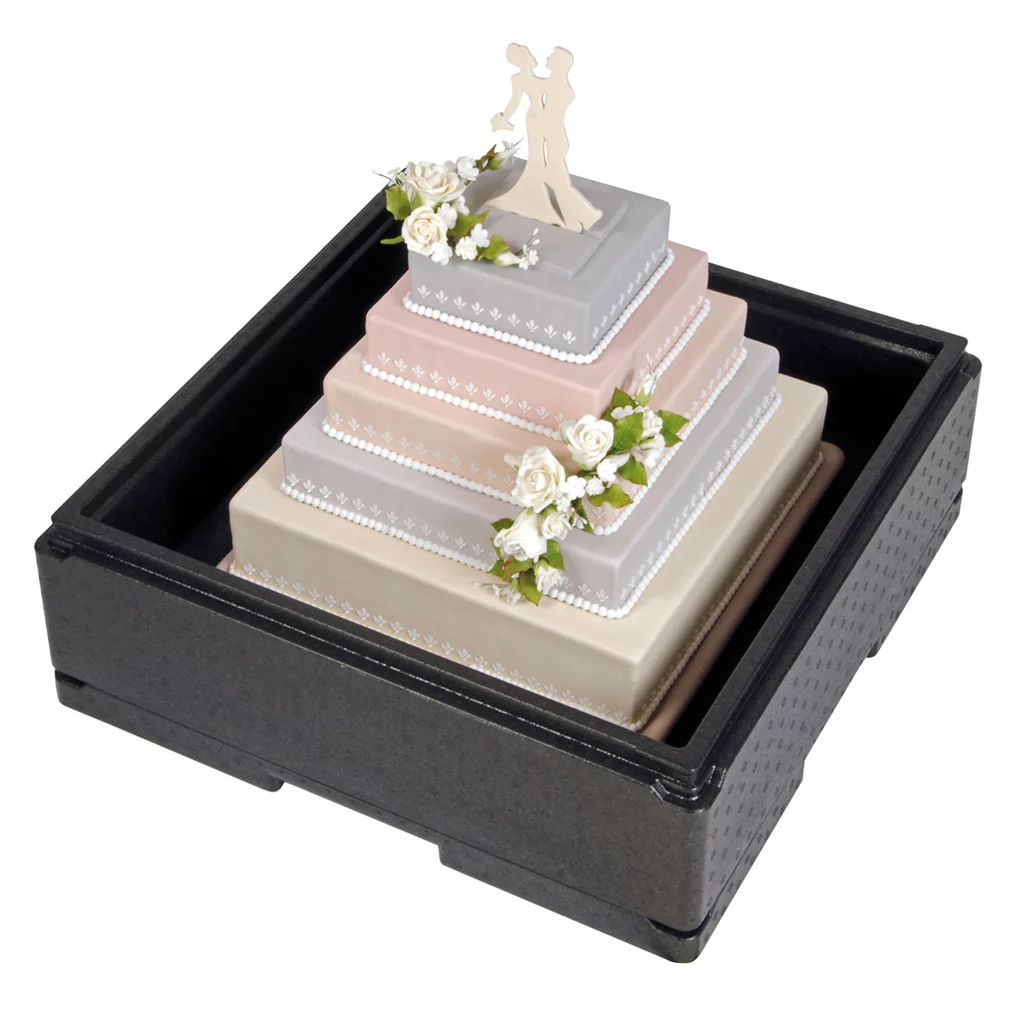 La Carry Box XL de Thermo Future Box es una solución térmica pasiva y reutilizable, especialmente diseñada para el transporte seguro de tortas grandes, postres delicados y productos de repostería de volumen elevado. Gracias a su construcción modular, permite ajustar la altura con marcos intercambiables, adaptándose a tortas de varios niveles o estructuras complejas.