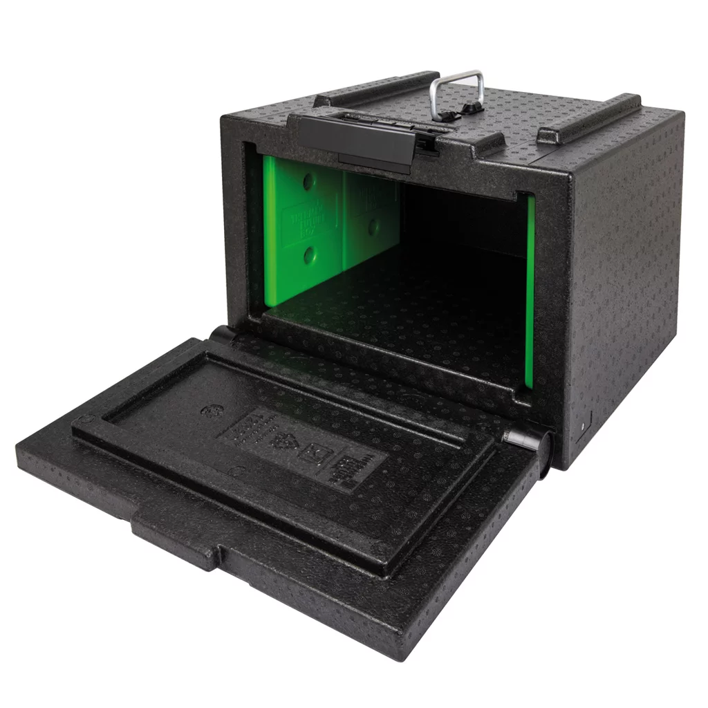El Carry Box 27L de Thermo Future Box es un contenedor térmico diseñado para el transporte seguro de pizzas, pasteles y productos alimenticios calientes o fríos. Fabricado en polipropileno expandido (EPP), un material ligero, resistente y reciclable, garantiza la conservación de la temperatura interna y la protección contra impactos.