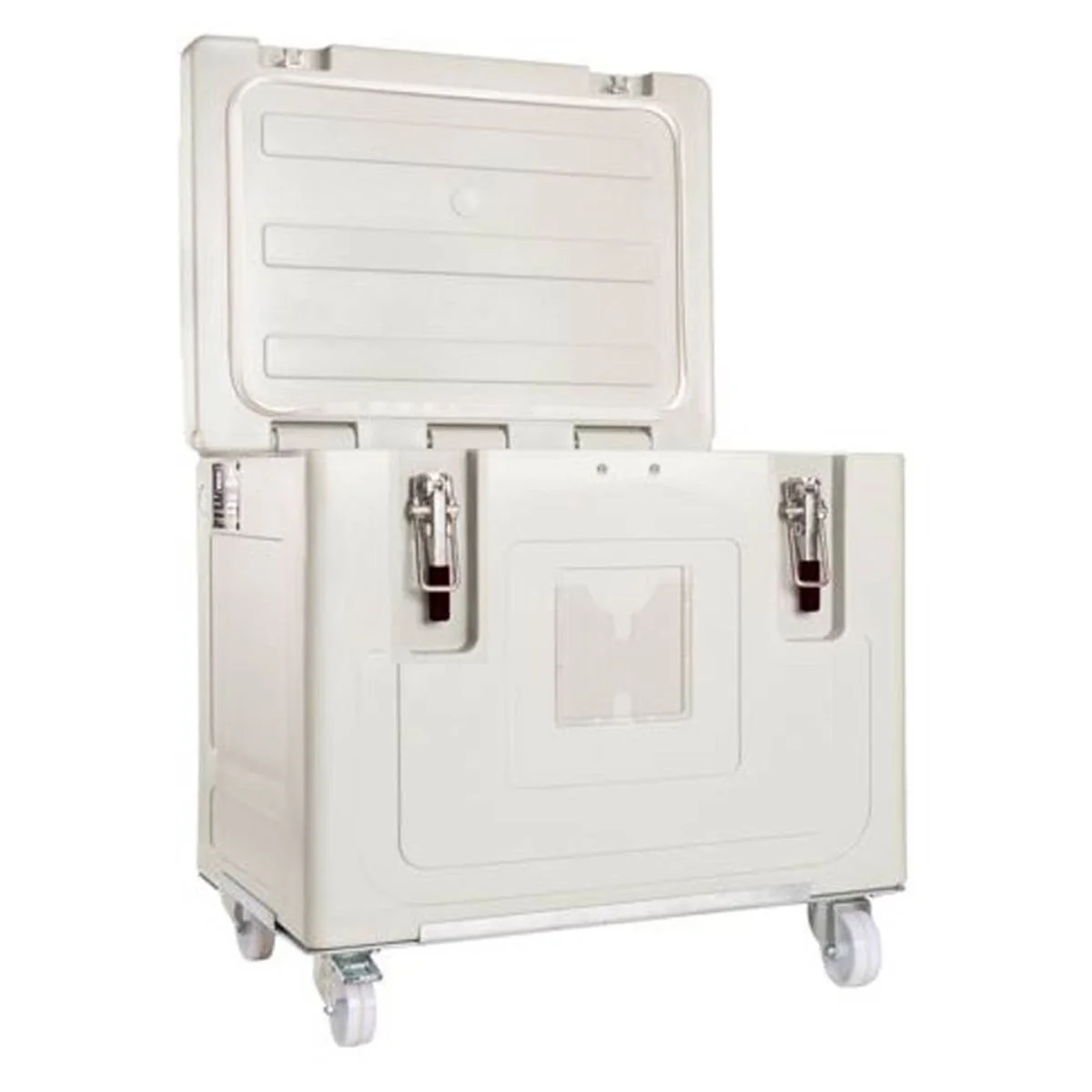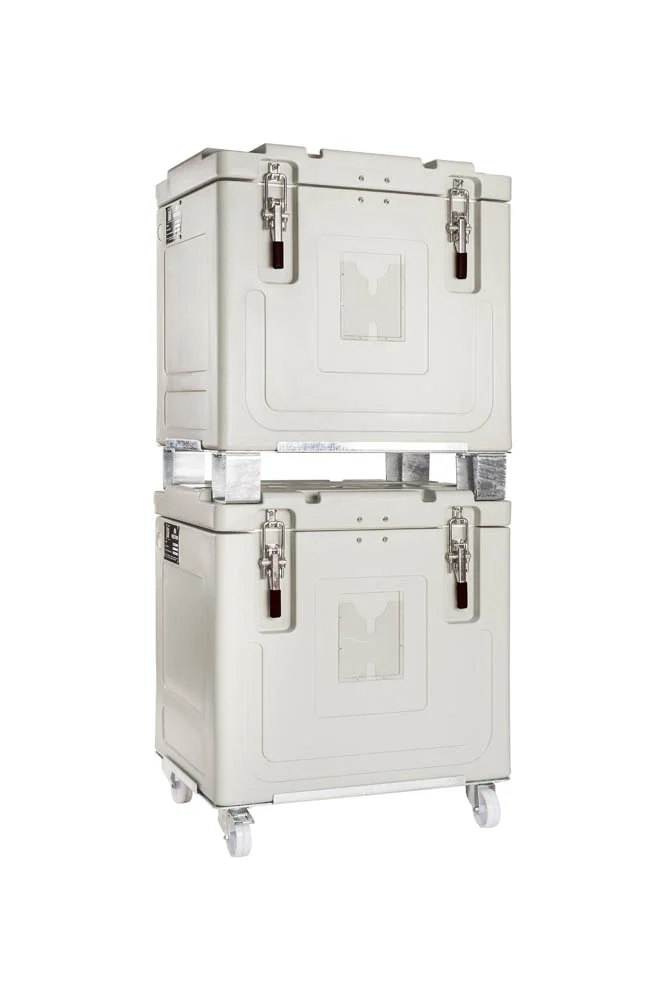 El Dricy 150 es un contenedor isotérmico de alta capacidad, diseñado especialmente para el transporte y conservación de hielo seco a temperaturas extremas sin requerir energía activa. Disponible en versiones con ruedas o con base tipo pallet, este modelo es ideal para operaciones logísticas exigentes en sectores como alimentación, salud e industria.