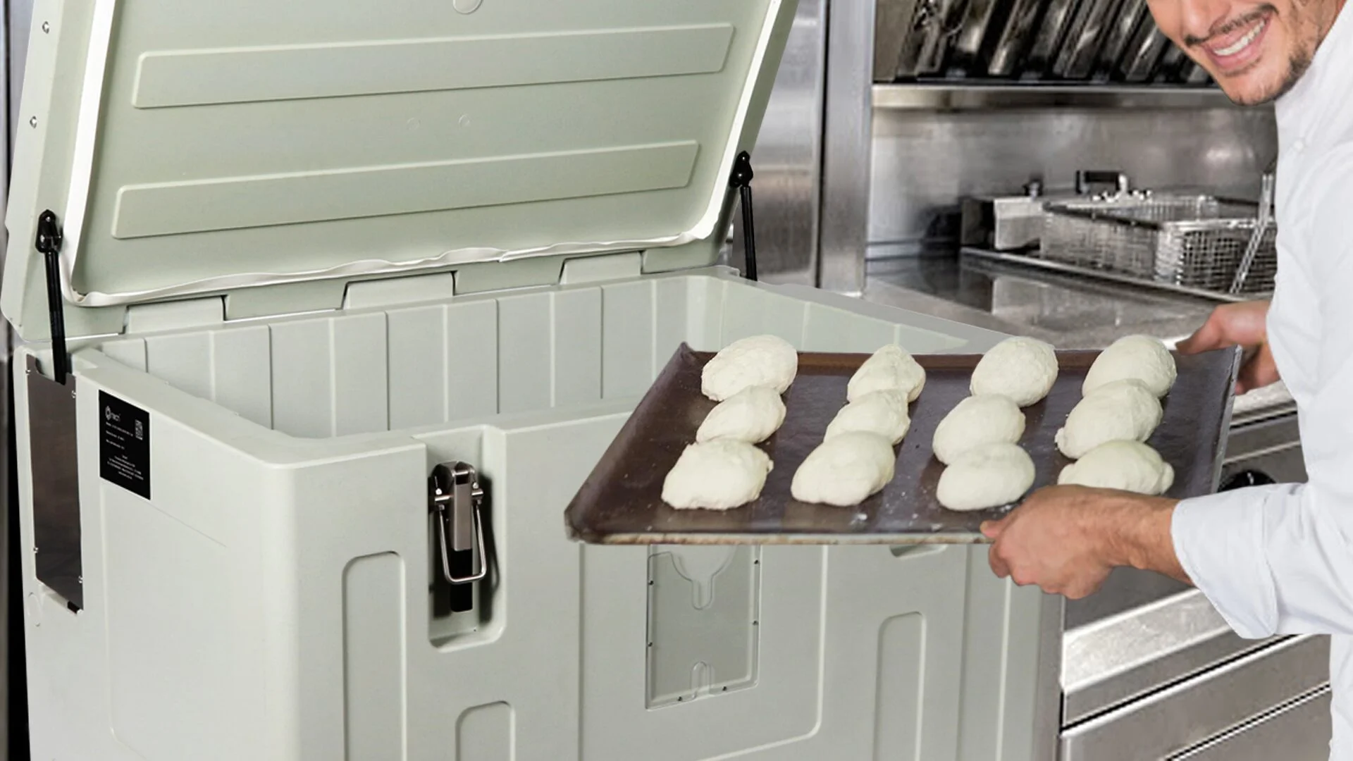 Fabricado en polietileno alimentario rotomoldeado, con aislamiento de poliuretano libre de CFC/HCFC.