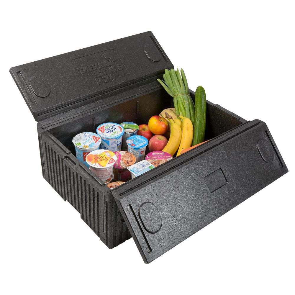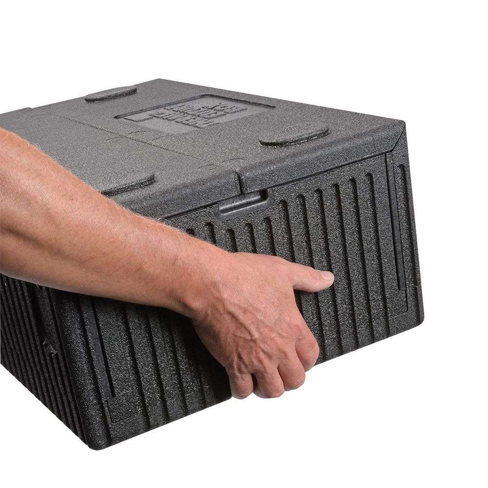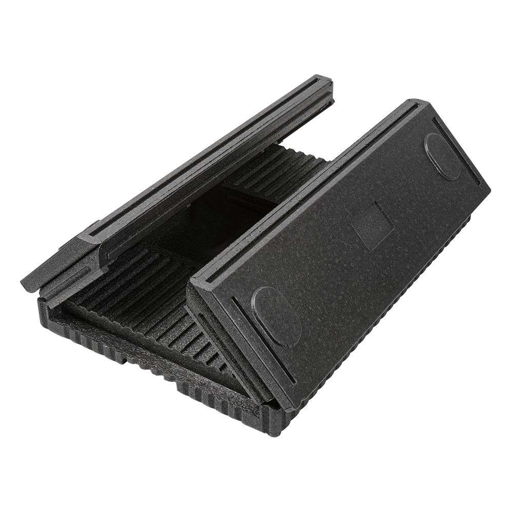 La Flat Box de Thermo Future Box es una caja térmica plegable fabricada en una sola pieza de EPP (polipropileno expandido), diseñada para combinar aislamiento térmico eficiente con ahorro de espacio logístico. Su estructura con tapa integrada y bisagras de lámina permite plegarla completamente cuando no está en uso, facilitando el almacenamiento y el transporte de retorno.