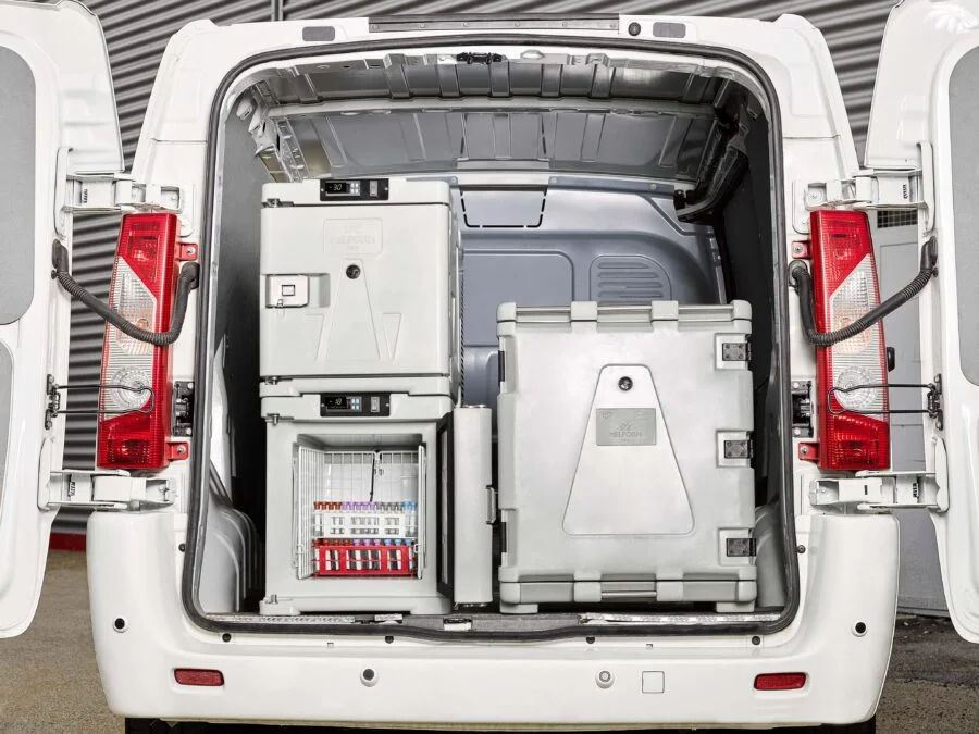 Contenedor isotérmico refrigerado compacto con apertura frontal, ideal para mantener productos sensibles a la temperatura en transporte y punto de venta. Equipado con sistema de refrigeración activa (12 V/230 V), control digital integrado, protección contra sobrecargas y distribución uniforme del frío. Fabricado en polietileno alimentario rotomoldeado con aislamiento de poliuretano sin CFC/HCFC y disponible con refrigerantes R134a o R452a según rango requerido.