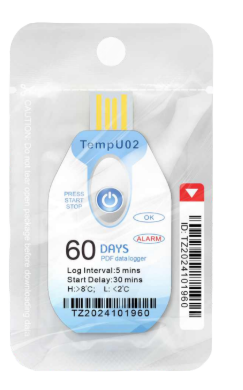 El Data Logger TempU02 de TZONE es un registrador desechable de alta fiabilidad diseñado para el control de temperatura en entornos sensibles como almacenamiento médico, transporte de vacunas, agricultura y cadena de frío. Su carcasa compacta de 69 × 33 × 5 mm y solo 10 g de peso incorpora un conector USB 2.0 integrado que permite la descarga rápida de datos sin cables adicionales, generando de forma automática informes PDF cifrados con resúmenes, estadísticas y gráficos. Equipado con alarma programable y retardo configurable, registra hasta 42 000 mediciones con intervalos de 5 minutos (opcional 10 min) y resiste inmersiones gracias a su protección IP67. Funciona de –30 °C a +70 °C con una precisión de ±0,5 °C en el rango –20 °C a +40 °C (±1 °C en el resto) y resolución de 0,1 °C, alimentado por una batería de litio CR2032 con una autonomía aproximada de 2 años; su software Temp RH Management facilita la configuración y análisis de datos